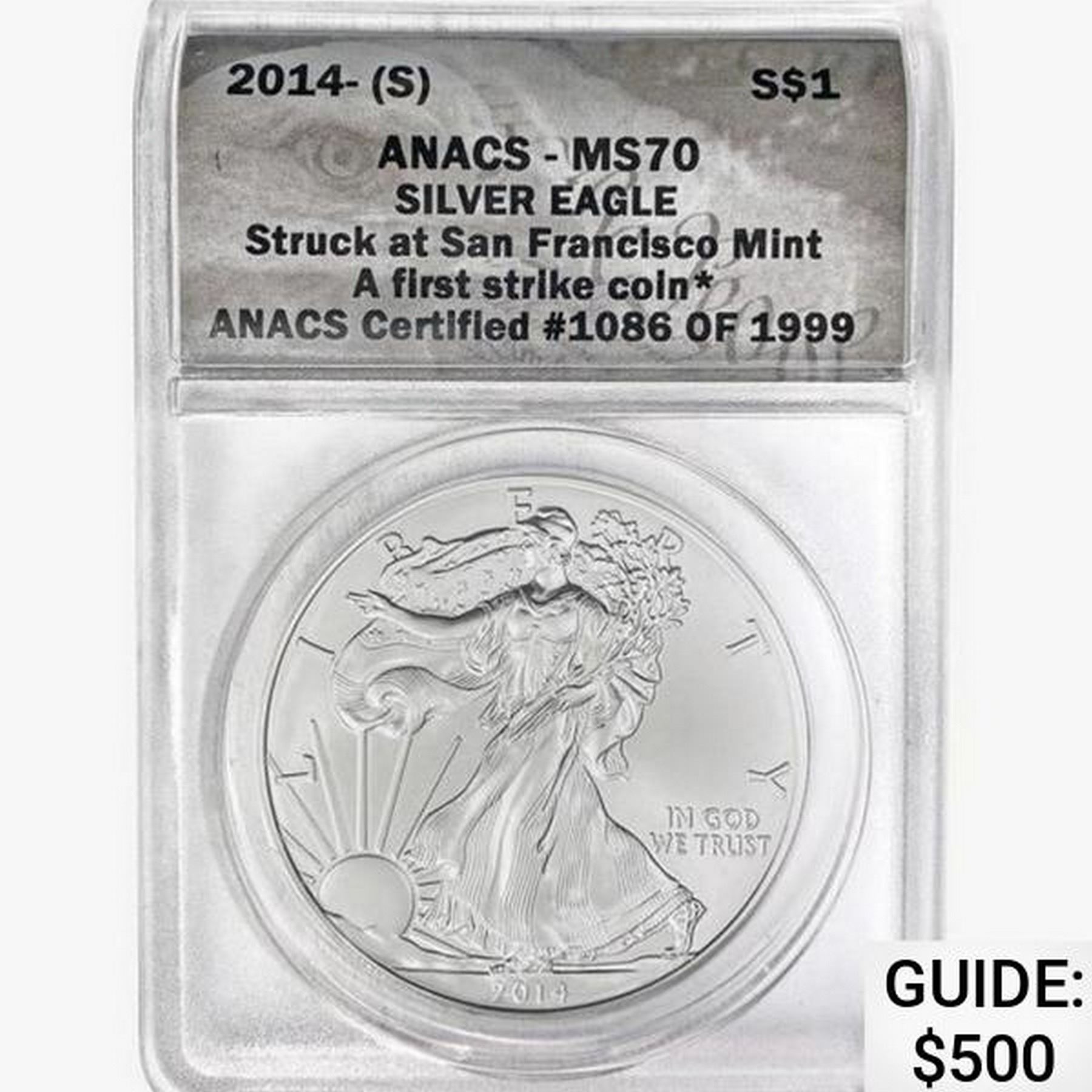 2014-S Silver Eagle ANACS MS70