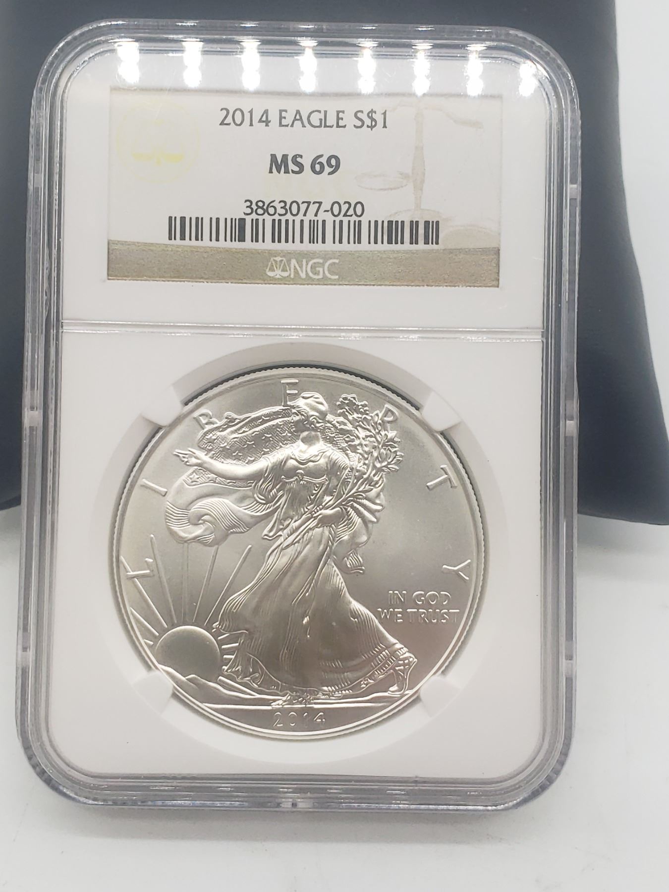 2014 Silver Eagle MS69 NGC All items Located in in Hollywood Florida Warehouse For Shipping Call today for quote they have item numbers and Pak Mail is available for all your custom packaging and shipping needs. We can package, palletize, crate, insure and ship to any Domestic or International location. All packaging and shipping fees must be paid in full before shipment is released. On international shipments, consignee is responsible for all Duties, Taxes, Customs Clearance or any destination fees that apply. Please visit our website @ www.pakmail.com/us770 for contact information or to get a quote. (Let us know you are a winning bidder from the Puckett auction so we can correctly arrange pick up for your item