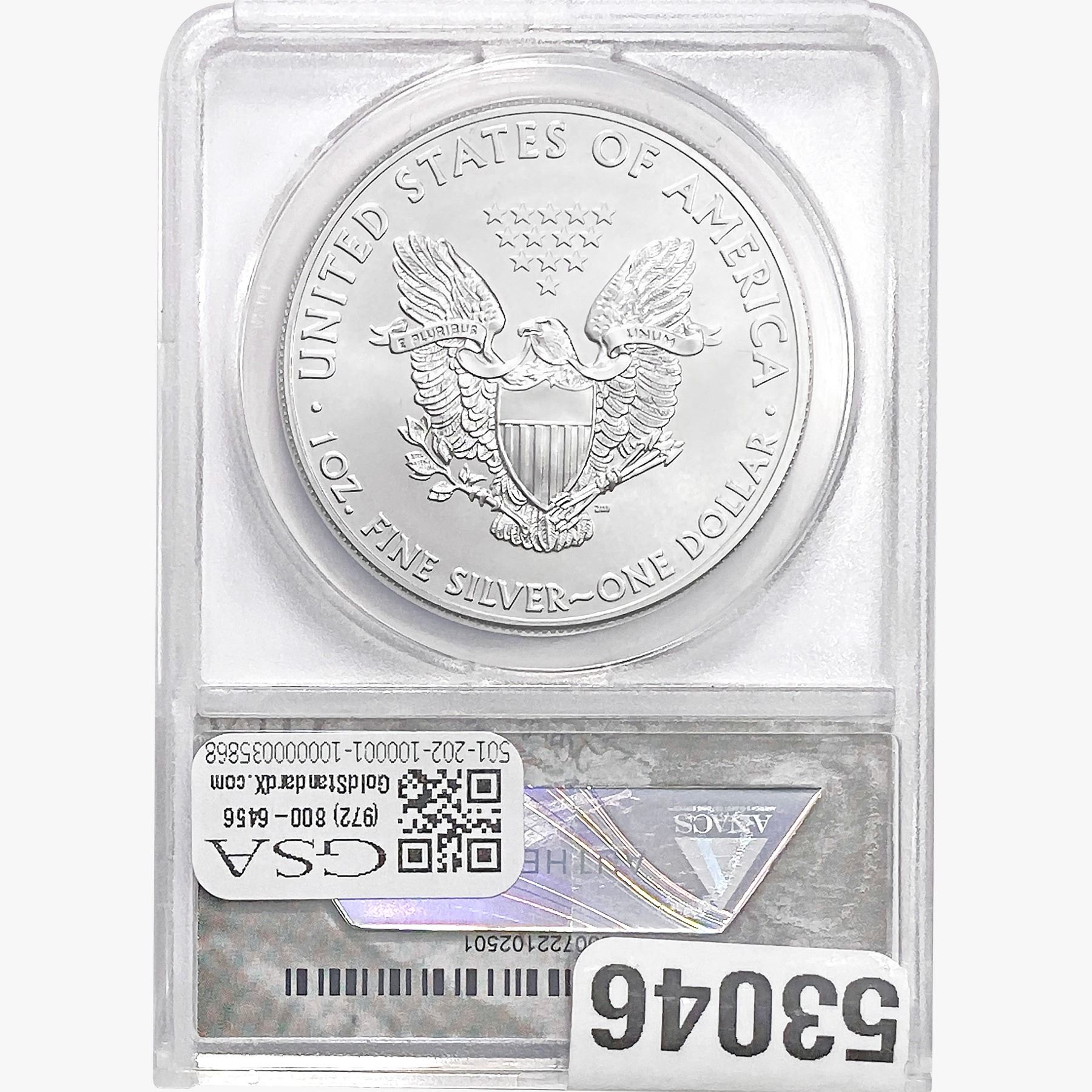 e. Coins sold referencing a third-party grading service are sold “AS IS” without any express or implied warranty, except for a guarantee by GSA that they are genuine. Removal or alteration of the holder, voids all of Bidder’s claims concerning that Product. Certain warranties may be available from the grading services and Bidders are referred to them for further details: Numismatic Guaranty Corporation (NGC), PO Box 4776, Sarasota, FL 34230, www.ngccoin.com/services/writtenguarantee.asp; Professional Coin Grading Services (PCGS), PO Box 9458, Newport Beach, CA 92658, www.pcgs.com/guarantee.html; ANACS, 6555 S. Kenton St., Ste. 303, Englewood, CO 80111; and Independent Coin Grading Co. (ICG), 7901 East Bellview, Ave., Suite 50, Englewood, CO 80111.