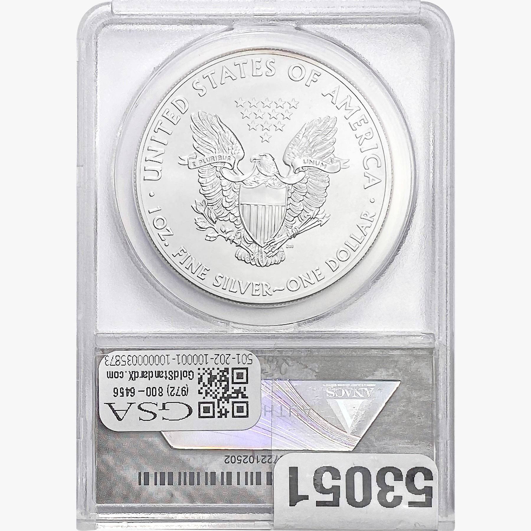 e. Coins sold referencing a third-party grading service are sold “AS IS” without any express or implied warranty, except for a guarantee by GSA that they are genuine. Removal or alteration of the holder, voids all of Bidder’s claims concerning that Product. Certain warranties may be available from the grading services and Bidders are referred to them for further details: Numismatic Guaranty Corporation (NGC), PO Box 4776, Sarasota, FL 34230, www.ngccoin.com/services/writtenguarantee.asp; Professional Coin Grading Services (PCGS), PO Box 9458, Newport Beach, CA 92658, www.pcgs.com/guarantee.html; ANACS, 6555 S. Kenton St., Ste. 303, Englewood, CO 80111; and Independent Coin Grading Co. (ICG), 7901 East Bellview, Ave., Suite 50, Englewood, CO 80111.