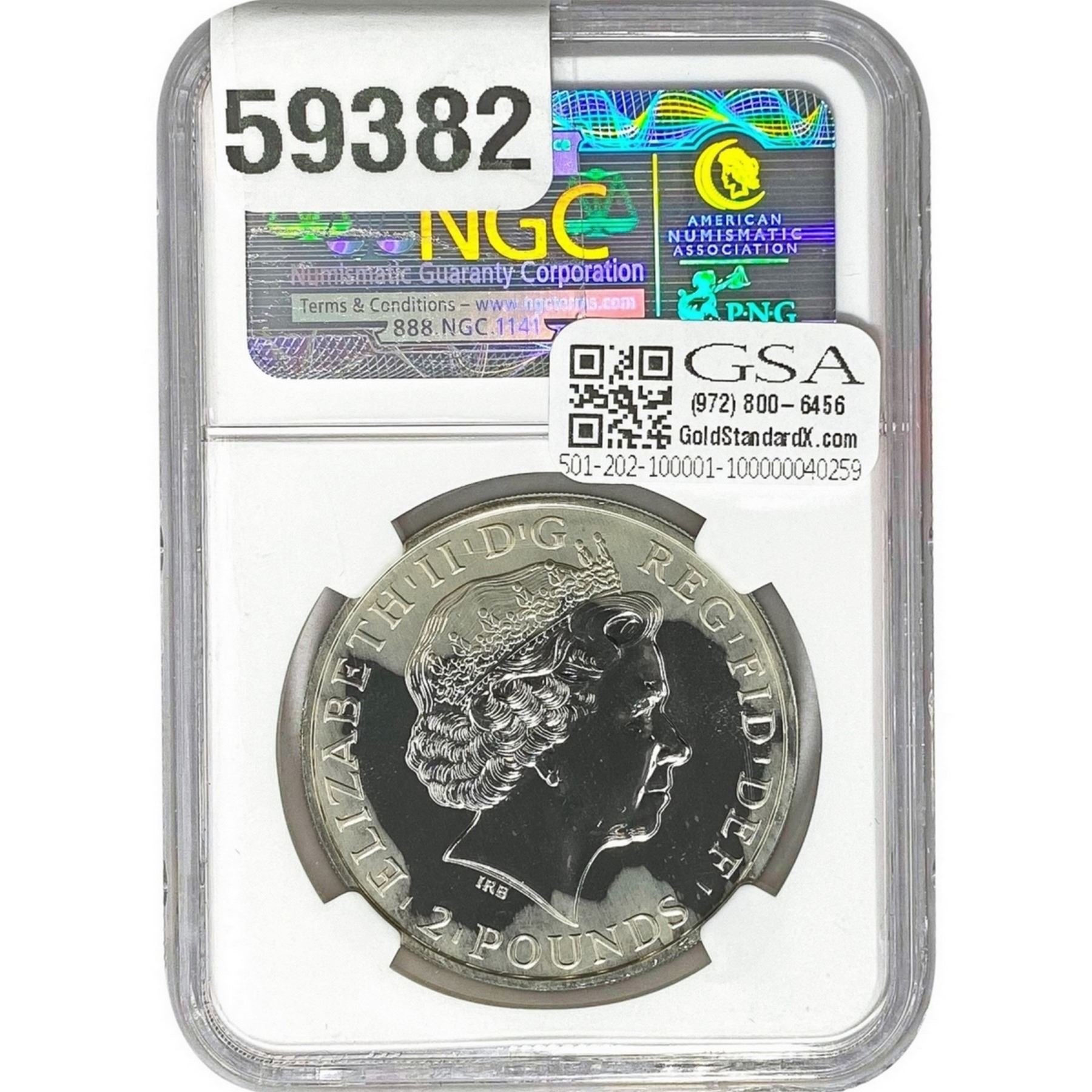 e. Coins sold referencing a third-party grading service are sold “AS IS” without any express or implied warranty, except for a guarantee by GSA that they are genuine. Removal or alteration of the holder, voids all of Bidder’s claims concerning that Product. Certain warranties may be available from the grading services and Bidders are referred to them for further details: Numismatic Guaranty Corporation (NGC), PO Box 4776, Sarasota, FL 34230, www.ngccoin.com/services/writtenguarantee.asp; Professional Coin Grading Services (PCGS), PO Box 9458, Newport Beach, CA 92658, www.pcgs.com/guarantee.html; ANACS, 6555 S. Kenton St., Ste. 303, Englewood, CO 80111; and Independent Coin Grading Co. (ICG), 7901 East Bellview, Ave., Suite 50, Englewood, CO 80111.