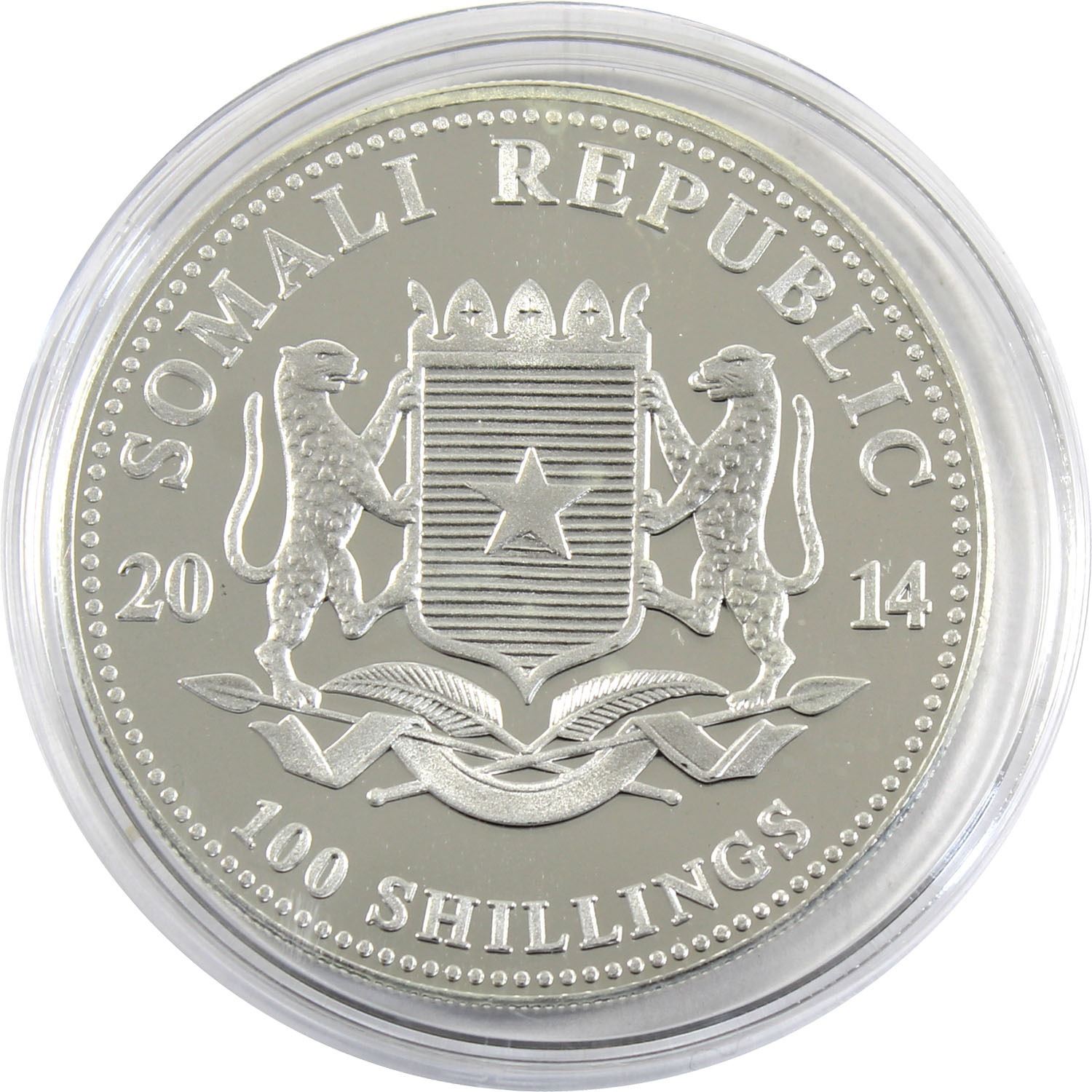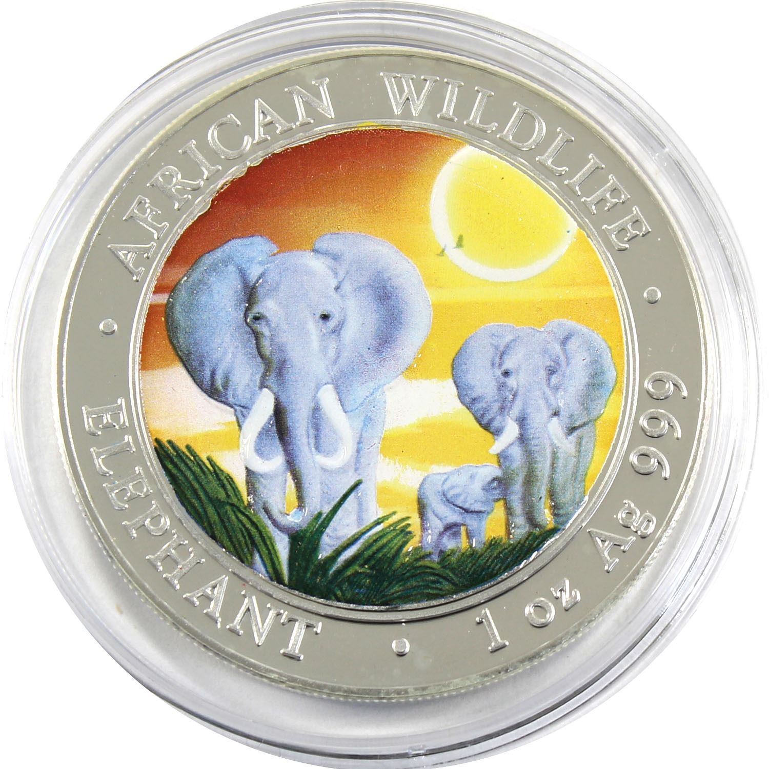 2014 Somali Republic 1oz Coloured African Elephant .999 Fine Silver Coin (lightly toned). TAX Exempt
