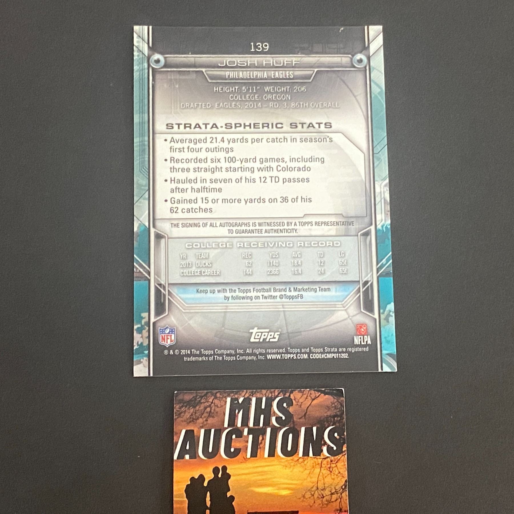 2014 TOPPS FOOTBALL AUTOGRAPH JOSH HUFF N.F.L AUTOGRAPH CARD