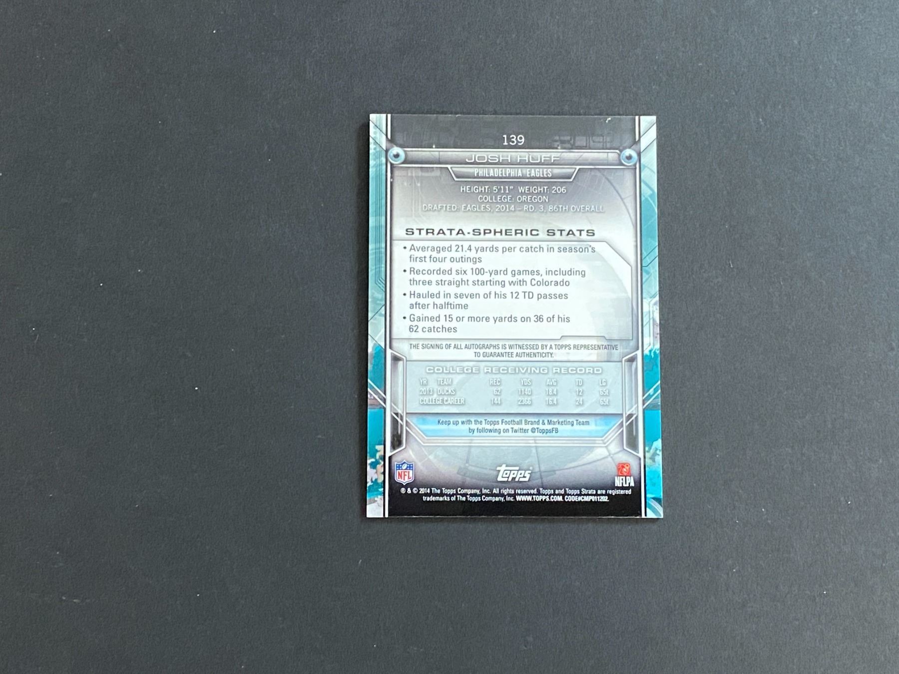 2014 TOPPS FOOTBALL AUTOGRAPH JOSH HUFF N.F.L AUTOGRAPH CARD