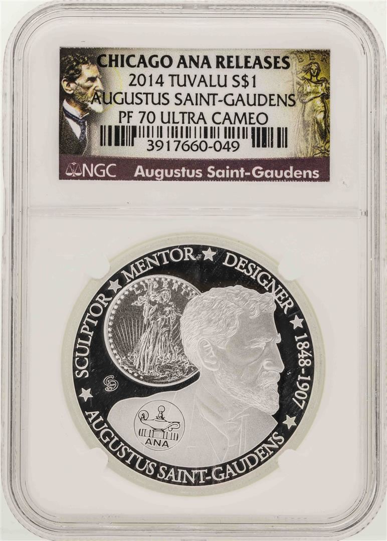 One 2014 Tuvalu Augustus Saint-Gaudens Coin NGC PF70 Ultra Cameo. NGC Certified.