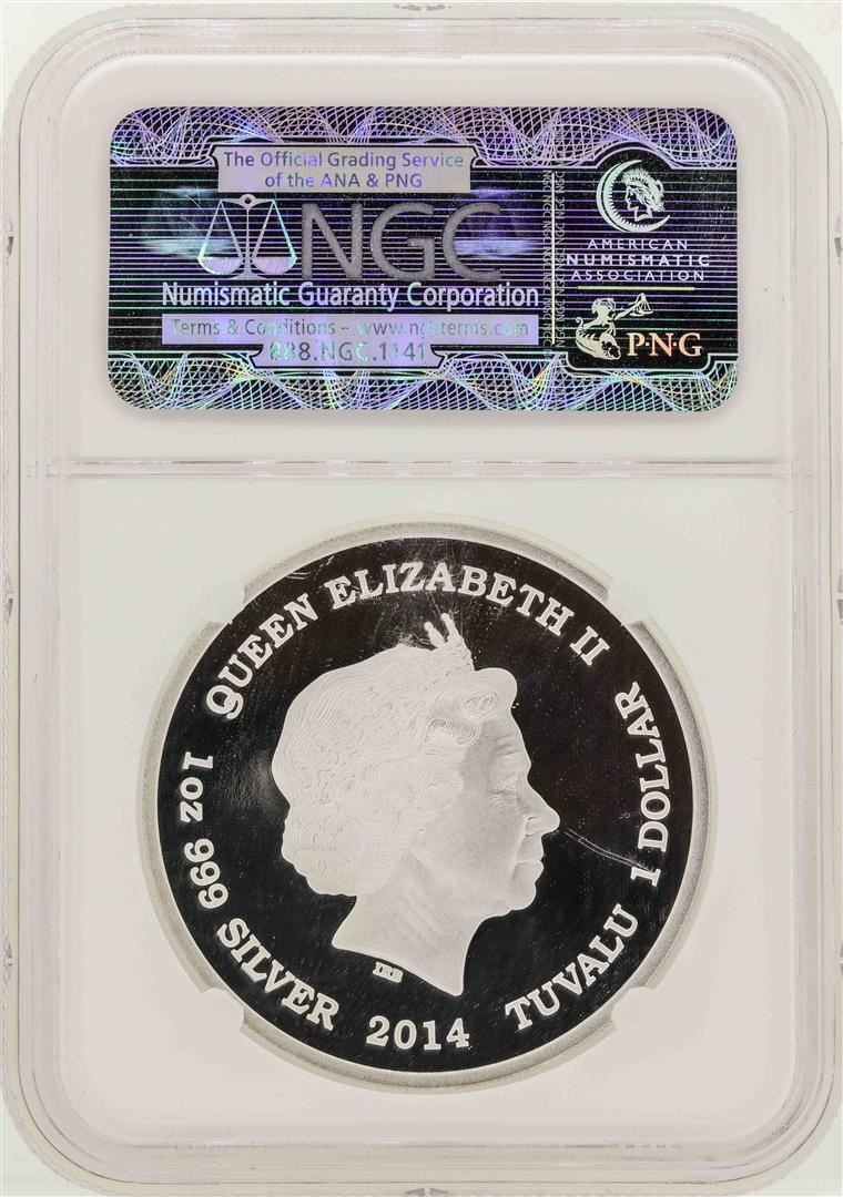 One 2014 Tuvalu Augustus Saint-Gaudens Coin NGC PF70 Ultra Cameo. NGC Certified.