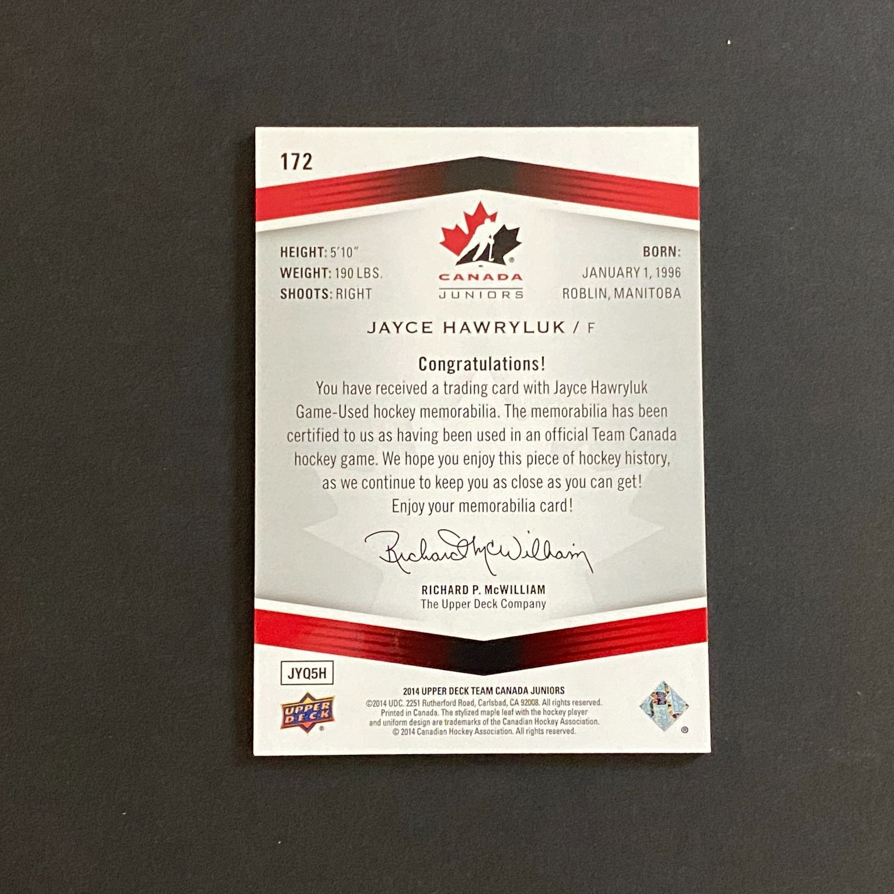 2014 U.D TEAM CANADA JAYCE HAWRYLUK JERSEY CARD