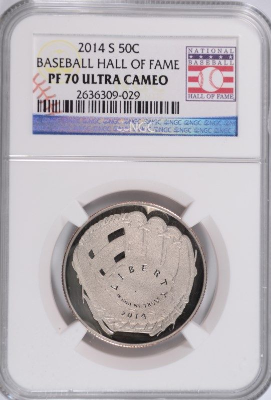 2014 U.S. MINT BASEBALL HALL OF FAME COMMEM. HALF DOLLAR, NGC PF-70 ULTRA CAMEO