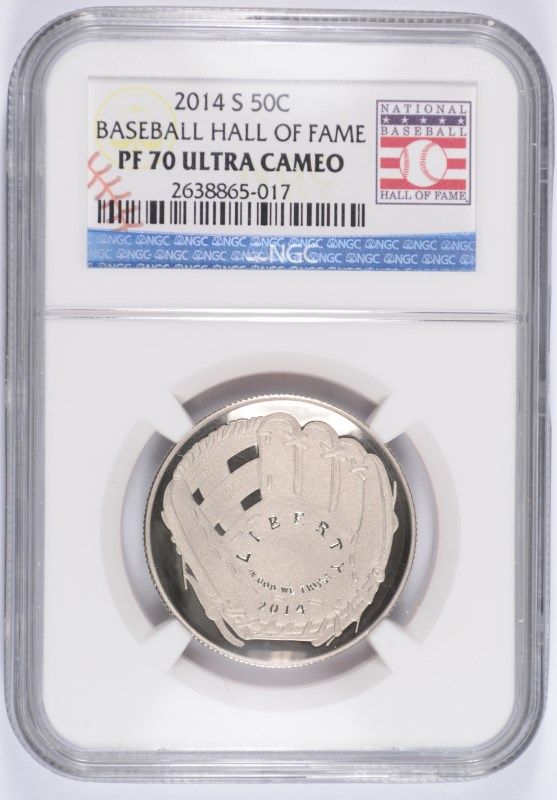 2014 U.S. MINT BASEBALL HALL OF FAME COMMEM. HALF DOLLAR, NGC PF-70 ULTRA CAMEO