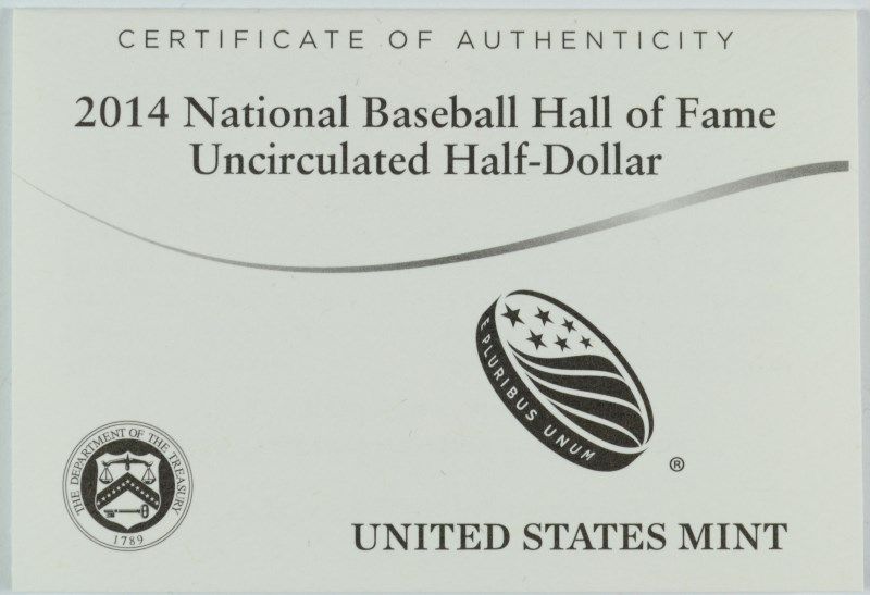 2014 U.S. MINT BASEBALL HALL OF FAME UNCIRCULATED HALF DOLLAR, ORIG. PACKAGING