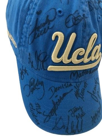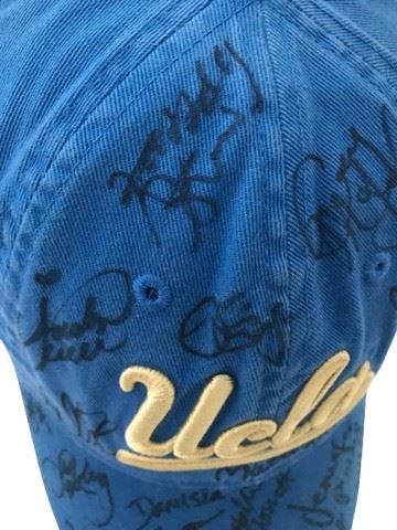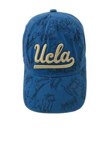 UCLA gymnastics circa 2014 blue Adidas baseball hat with embroidered logo. Signed by Jennifer Pinches, Alex Waller, Angi Cipra, Danusia Francis, Jessy MacArthur, Hallie Mossett, Sophia DeJesus, Mikaela Gerber and others