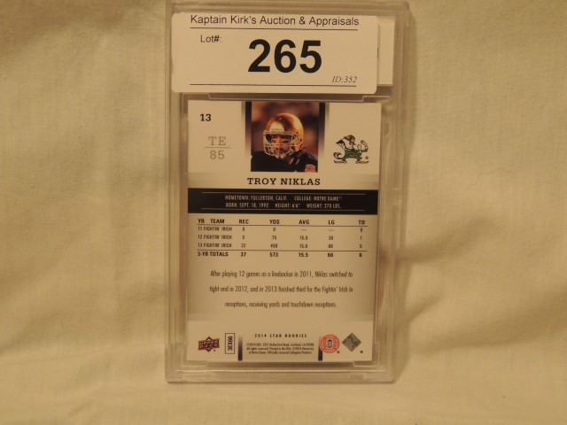 2014 UPPER DECK TROY NIKLAS ROOKIE BECKETT GRADED