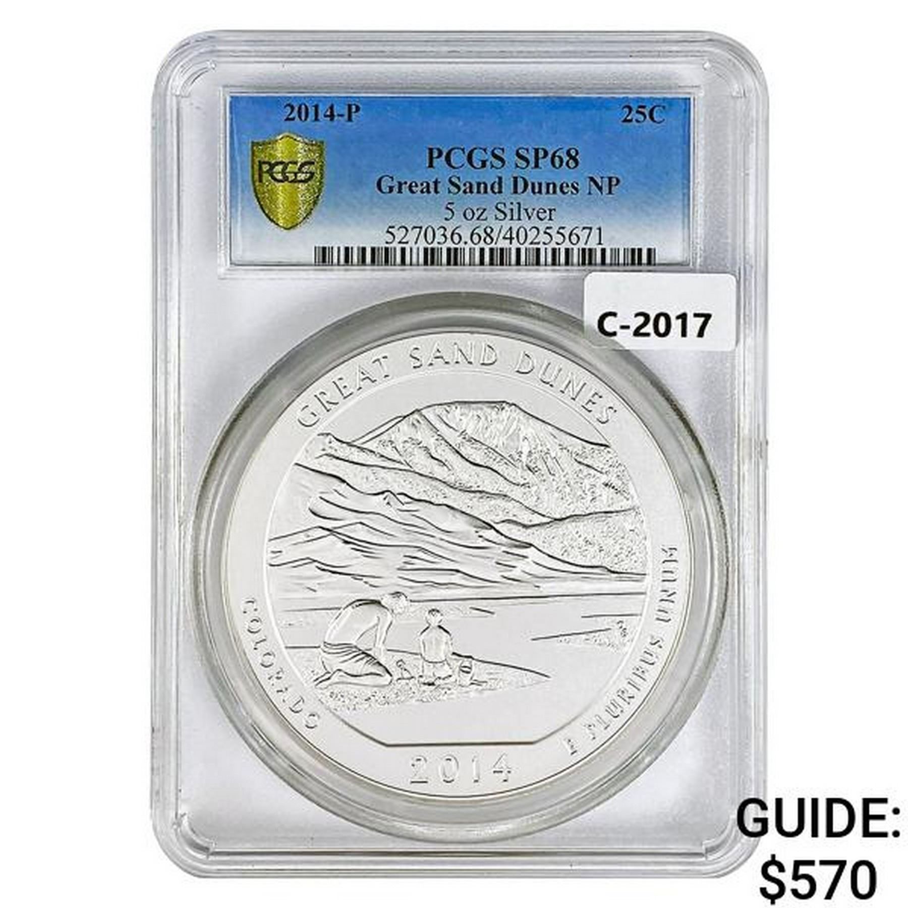 2014 US 5oz Silver Great Sand Dunes Round PCGS SP6