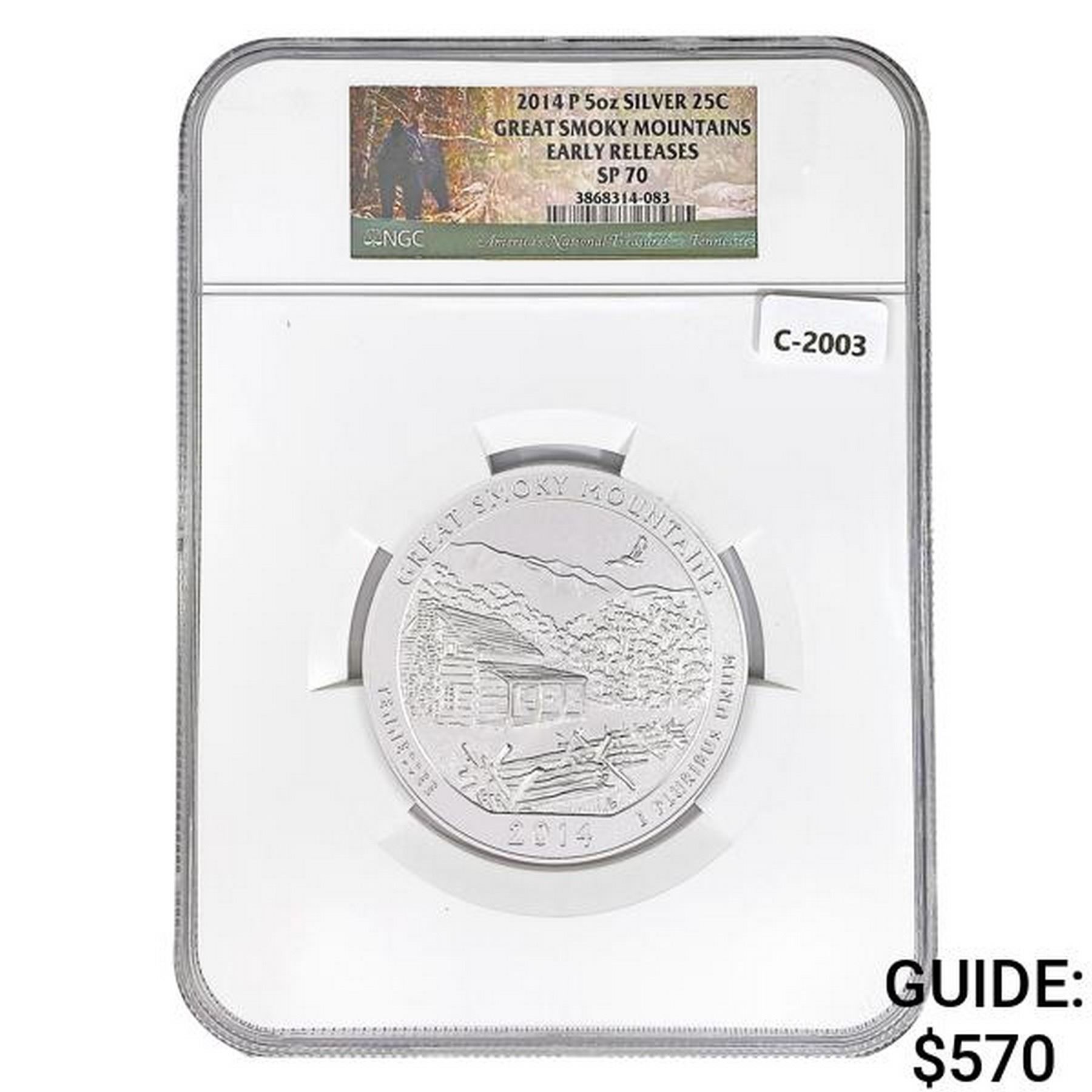 2014 US 5oz Silver Great Smoky Mtns. Round NGC SP7