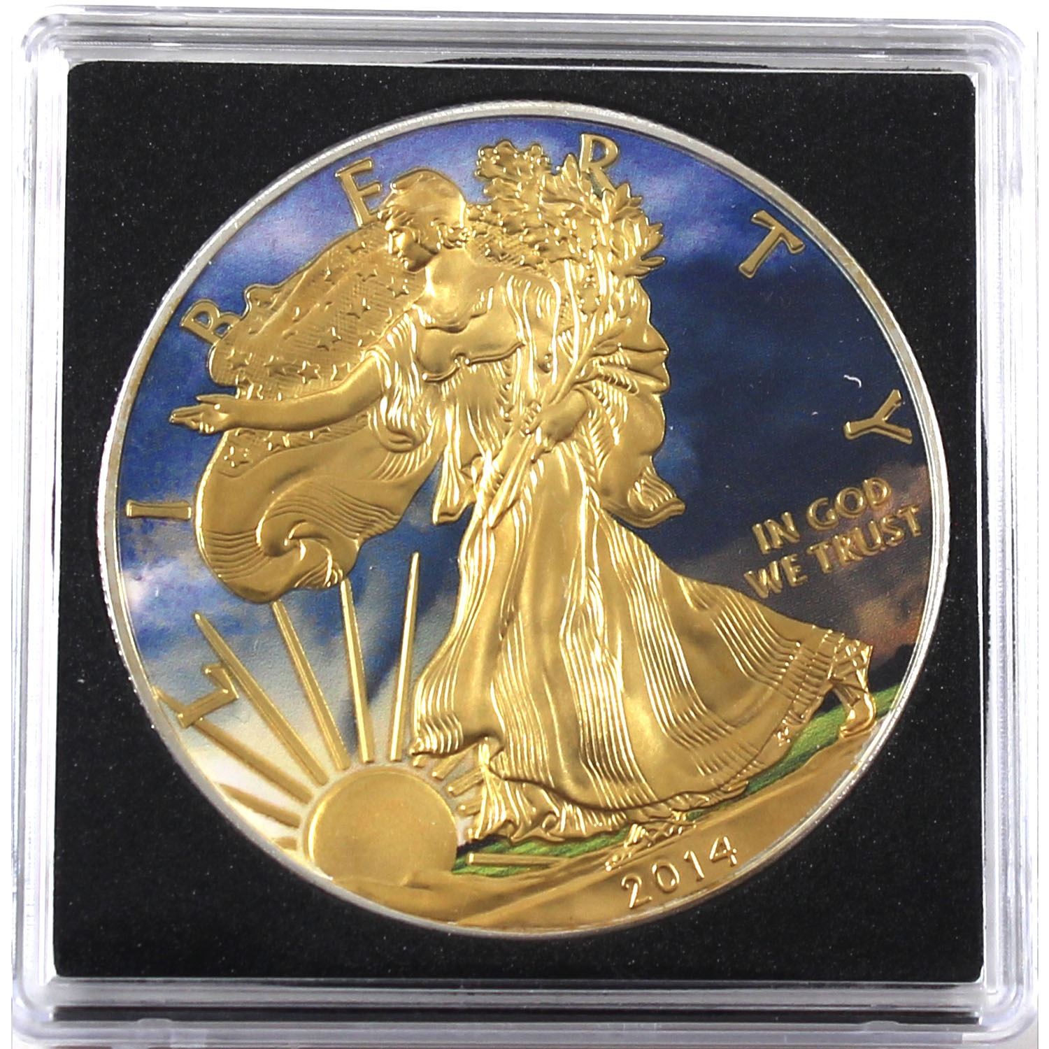 2014 USA 1oz Coloured & Gilded Blue Sky .999 Fine Silver Eagle in Capsule (TAX Exempt).
