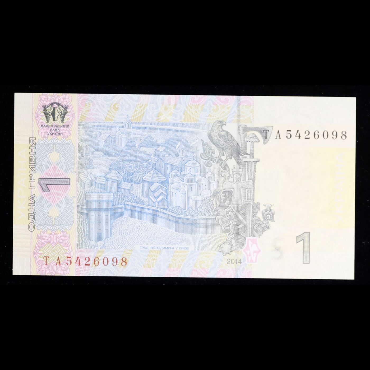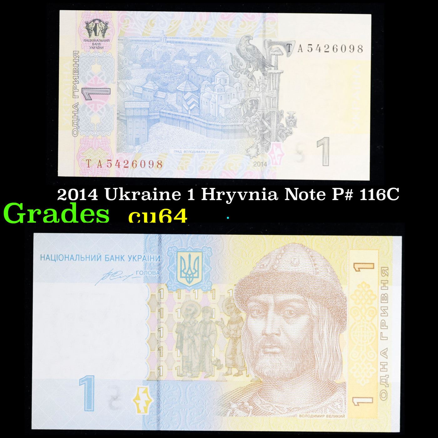 2014 Ukraine 1 Hryvnia Note P# 116C Grades Choice CU.