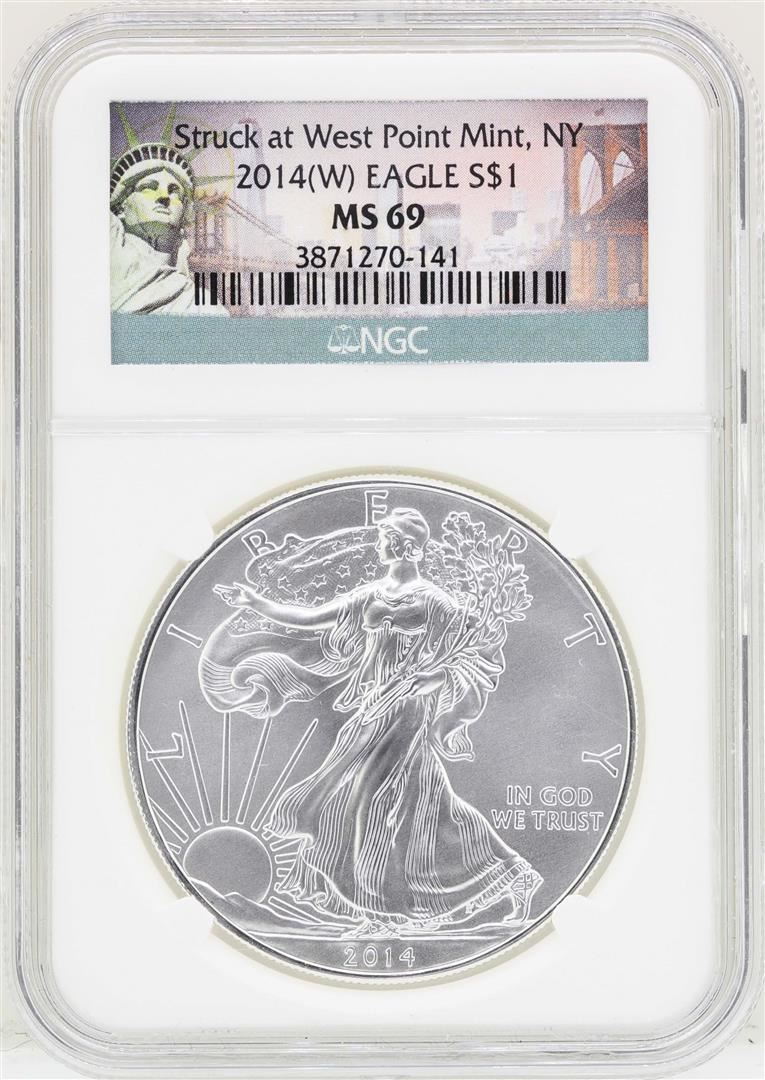 One 2014-W $1 American Silver Eagle Coin NGC MS69. NGC Certified.