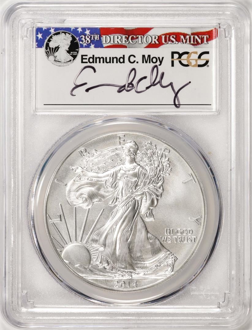 2014-W $1 Burnished American Silver Eagle Coin PCGS SP70 Edmund C. Moy Signature