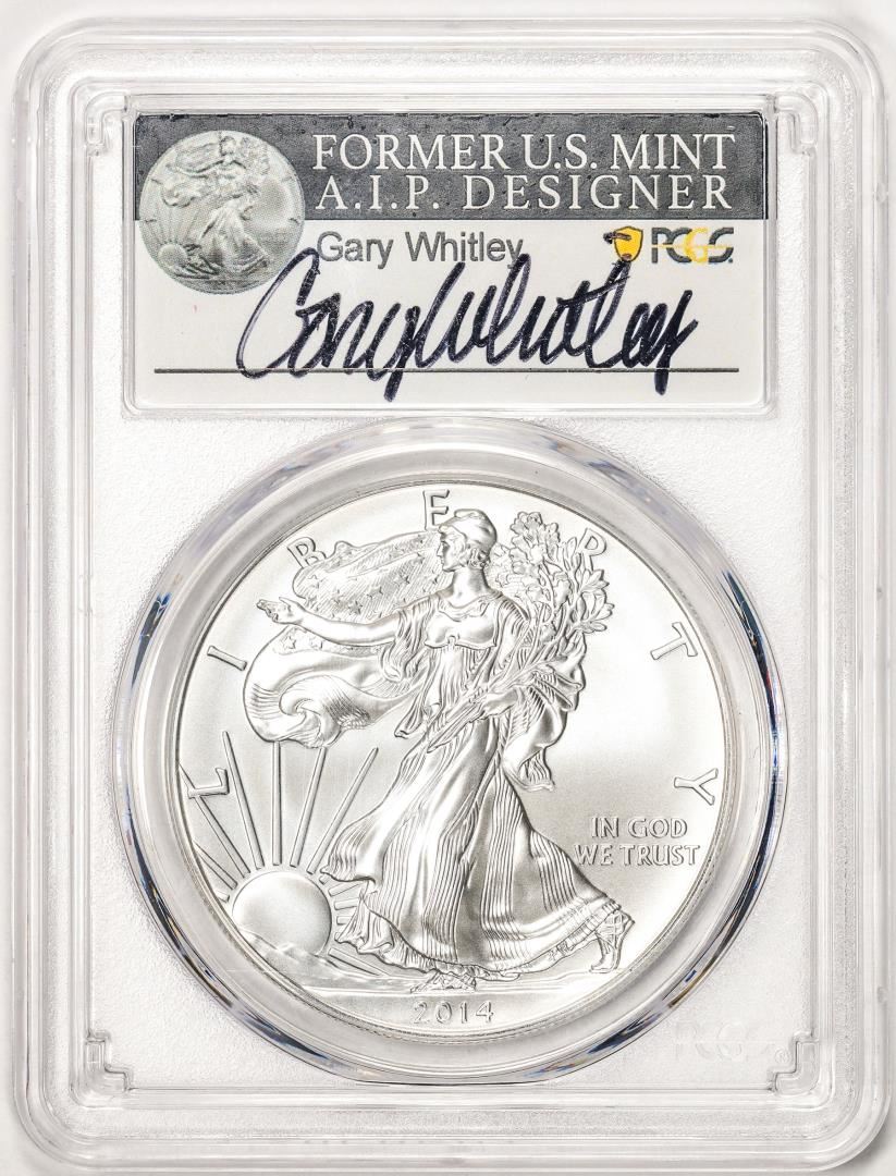 2014-W $1 Burnished American Silver Eagle Coin PCGS SP70 Gary Whitley Signature