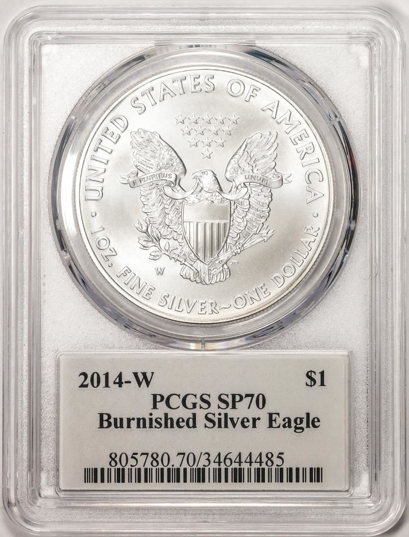 2014-W $1 Burnished American Silver Eagle Coin PCGS SP70 Gary Whitley Signature