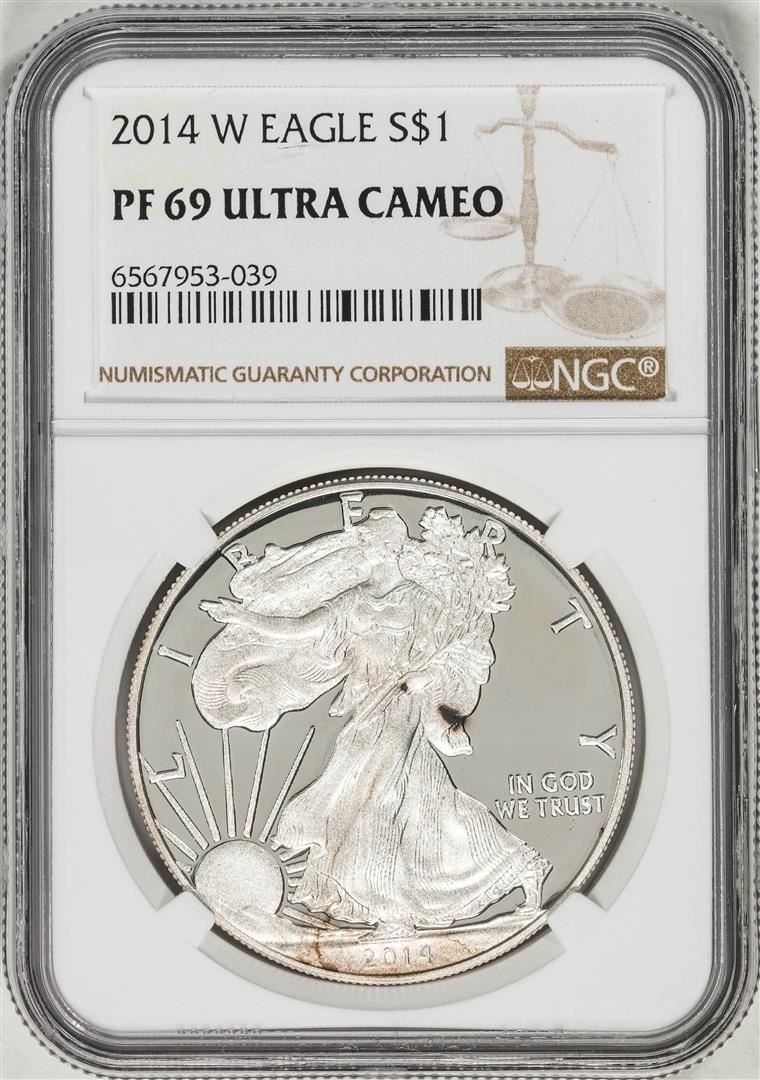 2014-W $1 Proof American Silver Eagle Coin NGC PF69 Ultra Cameo