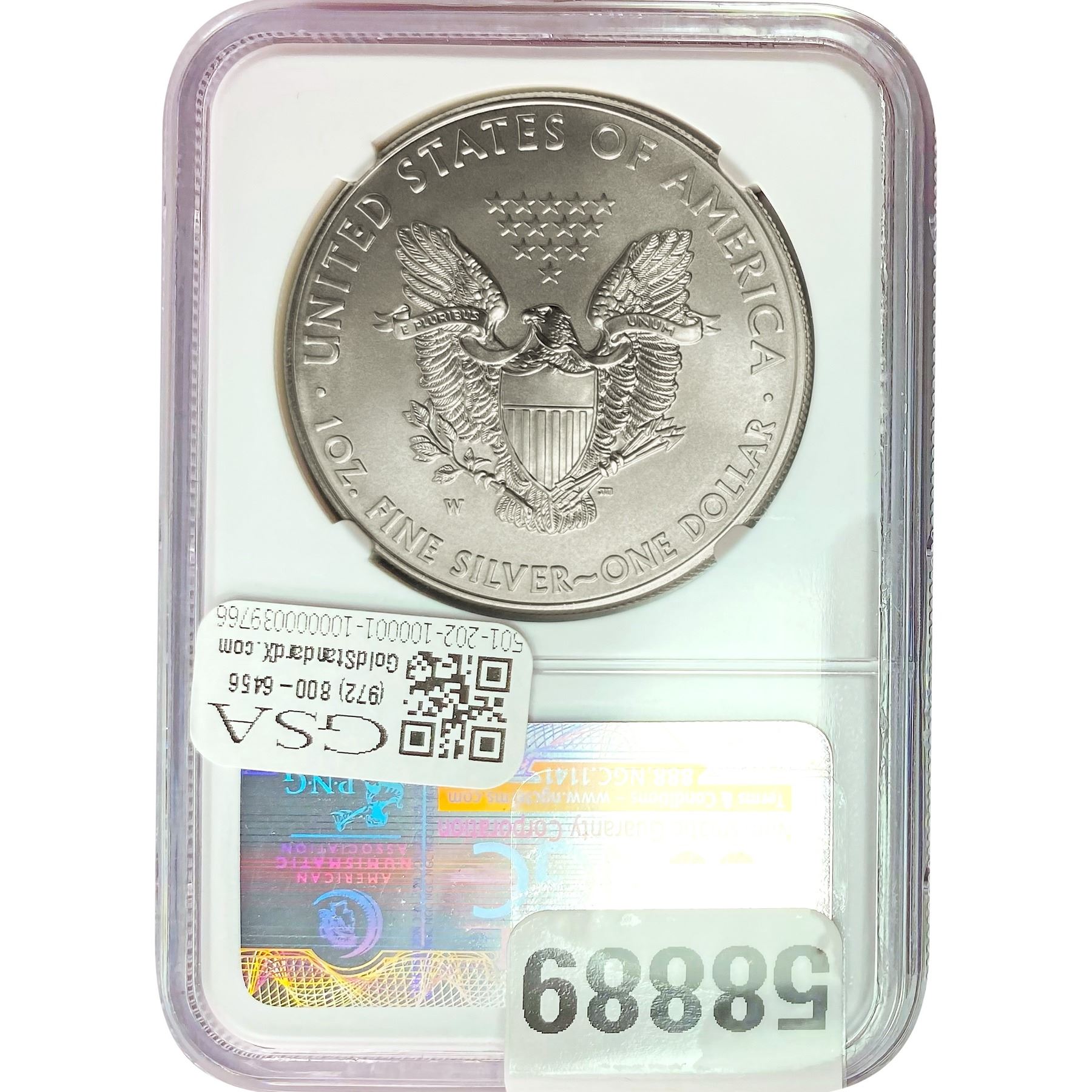 e. Coins sold referencing a third-party grading service are sold “AS IS” without any express or implied warranty, except for a guarantee by GSA that they are genuine. Removal or alteration of the holder, voids all of Bidder’s claims concerning that Product. Certain warranties may be available from the grading services and Bidders are referred to them for further details: Numismatic Guaranty Corporation (NGC), PO Box 4776, Sarasota, FL 34230, www.ngccoin.com/services/writtenguarantee.asp; Professional Coin Grading Services (PCGS), PO Box 9458, Newport Beach, CA 92658, www.pcgs.com/guarantee.html; ANACS, 6555 S. Kenton St., Ste. 303, Englewood, CO 80111; and Independent Coin Grading Co. (ICG), 7901 East Bellview, Ave., Suite 50, Englewood, CO 80111.