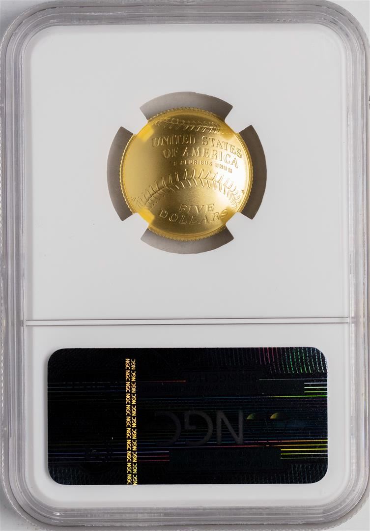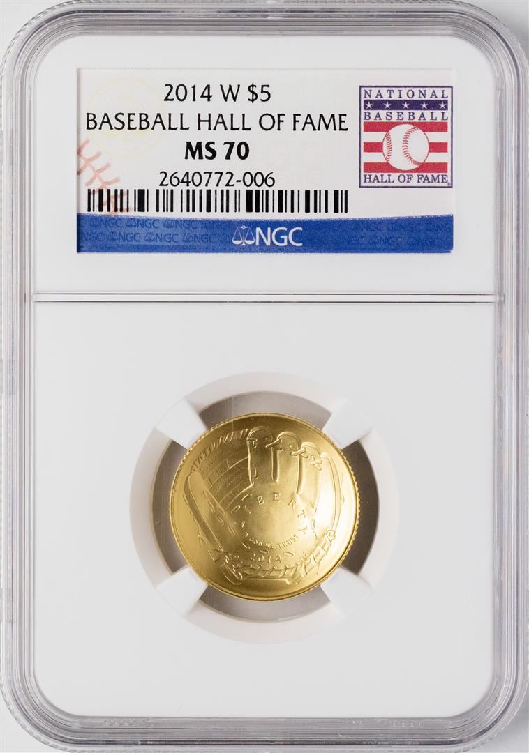 One 2014-W $5 Baseball Hall of Fame Gold Coin NGC MS70. NGC Certified.