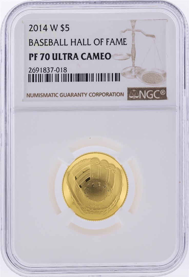 One 2014-W $5 Baseball Hall of Fame Gold Coin NGC PF70 Ultra Cameo. NGC Certified.