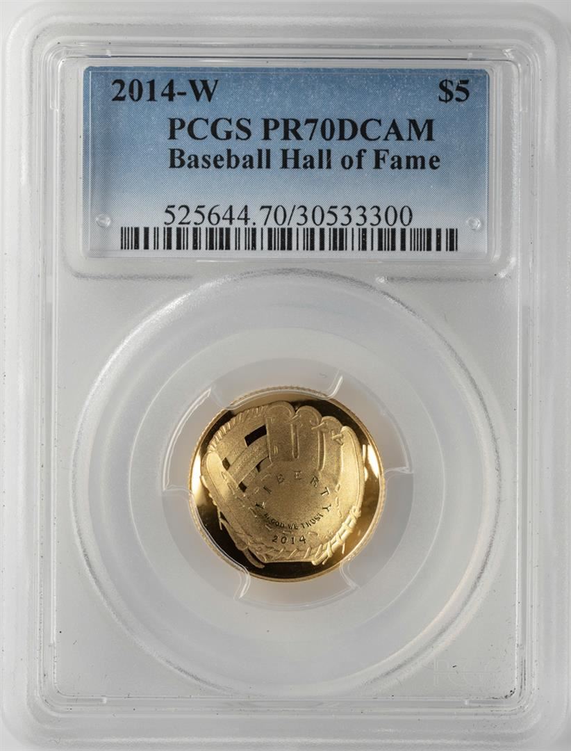 One 2014-W $5 Baseball Hall of Fame Gold Coin PCGS PR70DCAM. PCGS Graded.
