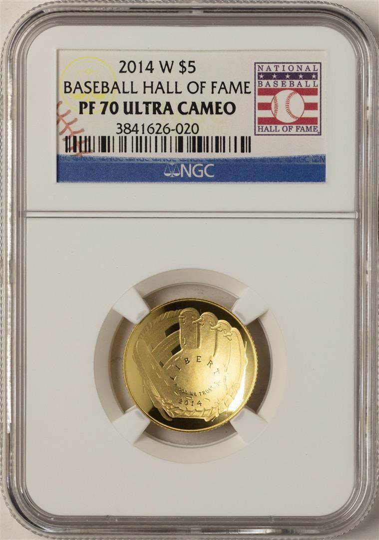 One 2014-W $5 Proof Baseball Hall of Fame Commemorative Gold Coin NGC PF70 Ultra Cameo. NGC Certified.