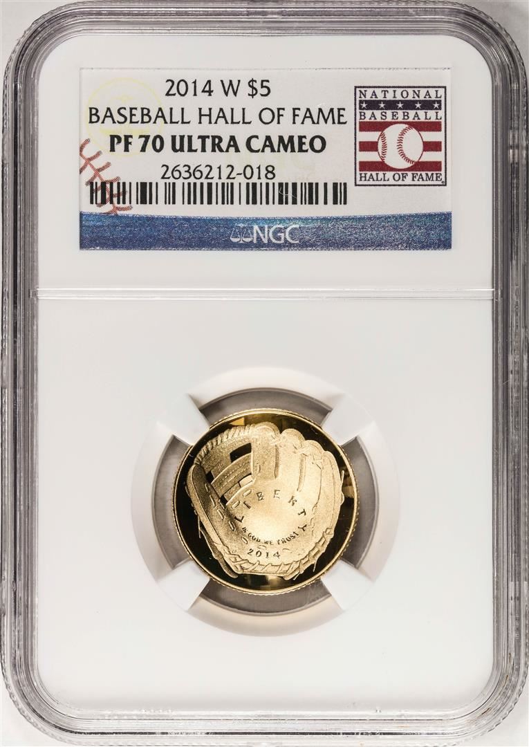 One 2014-W $5 Proof Baseball Hall of Fame Gold Coin NGC PF70 Ultra Cameo. NGC Certified.