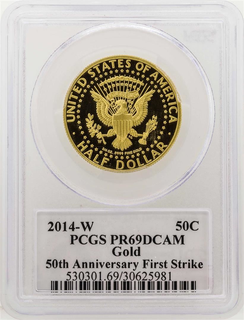 One 2014-W Kennedy 50th Anniversary First Strike Half Dollar Gold Coin PCGS PR69DCAM. PCGS Graded.