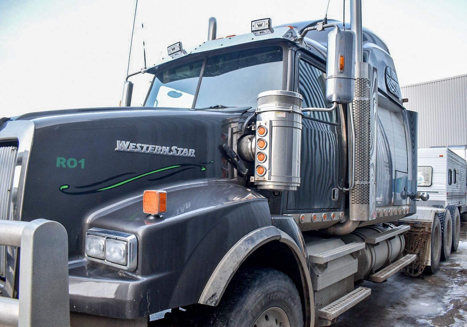 VIN: 5KJRALD13EPFT8074 KM: 400096.1 Engine: 15.6L Color: BLACK BUYERS PREMIUM WILL BE 4% FOR THIS TRUCK.TRANSPORT FEATURES:KM-400096.1KM. ENGINE HOURS-11240, DUAL LINE WETKIT, ALUMINIUM MOOSE BUMPER, 14-WHEELER, EATON FULLER.600HP DD16 DETROIT ENGINE, TRLO-18918B 8 SPEED TRANSMISSION, 600HP, GVW 54,300KG, TARE WEIGHT T 9,200KG. 78" WIDE TRACK SUSPENSION, AIR CONDITIONING, CRUISE CONTROL, POWER DOOR LOCKS, POWER WINDOWS, LEATHER SEATS, 8 SPEED MANUAL TRANSMISSION, KENWOOD CB, FULLY CUSTOMIZED CAB HAS FOLD UP TWIN BUNK, TABLE WITH 2 BOOTHS, GALANZ MINI FRIDGE, MASTERCHEF MICROWAVE, TWO SETS OF STORAGE CABINETS, PIONEER SPEAKER SYSTEM, FRONT AXLE-20,000 LBS REAR AXLE-69,000LBS FRONT TIRE SIZE-385/65R22.5 F TIRE WEAR-60% ALUM.REAR TIRE AIZE-11R27.5 R TIRE WEAR-85% ALUM. AXLE RATIO-4,10 WHEEL BASE 268" SLEEPER SIZE-72" STRAIGHT