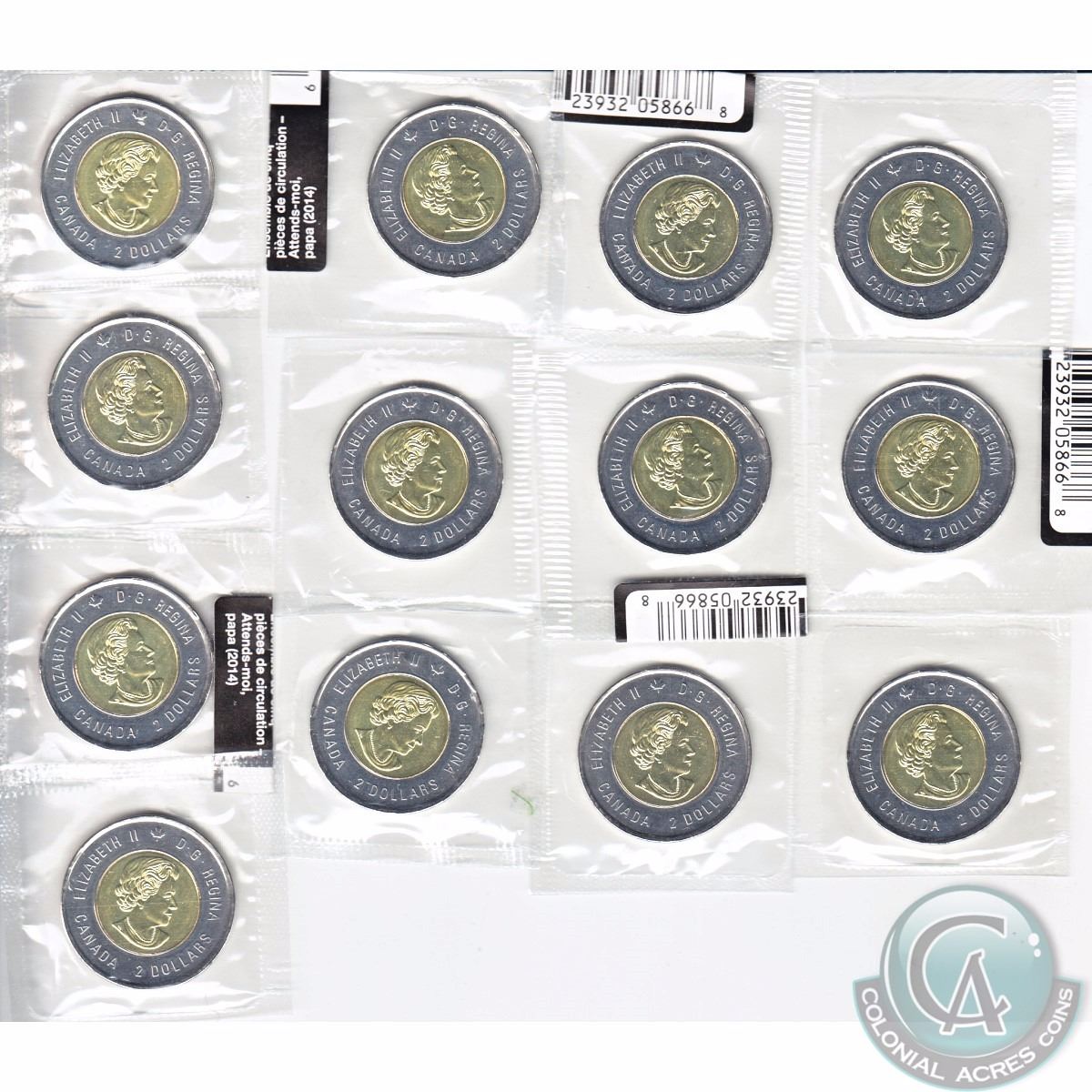 2014 Wait for me Daddy Canada $2 commemorative coins sealed in the original pliofilm as issued by the Mint. 13pcs