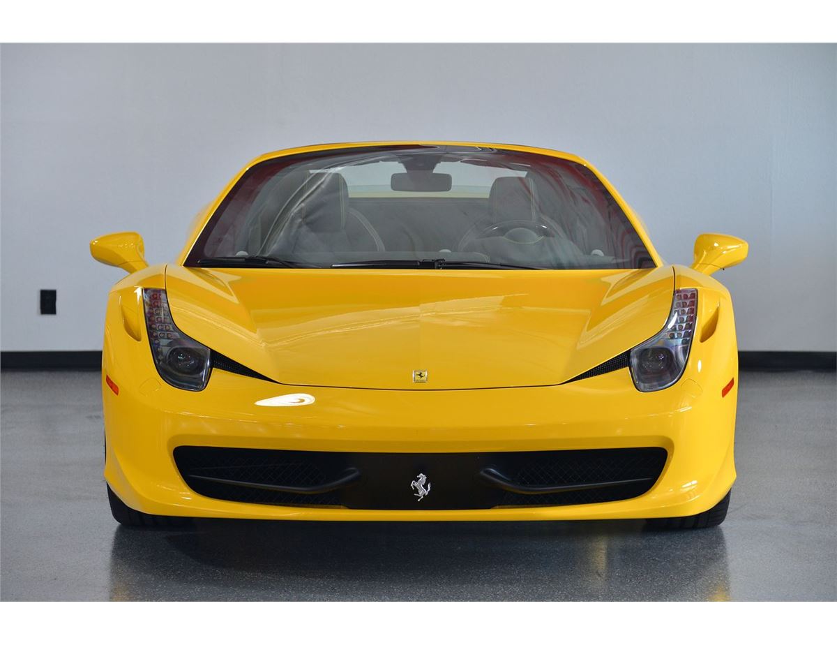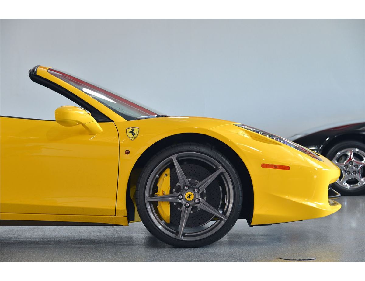 This 2014 Yellow Ferrari 458 Spider Base Convertible has a 4.5L V-8 cyl engine and 7 speed automatic with auto-shift transmission and rear-wheel drive. It recieves an average of 13 city MPG and 17 highway MPG. Vin #ZFF68NHA3E0198840.
