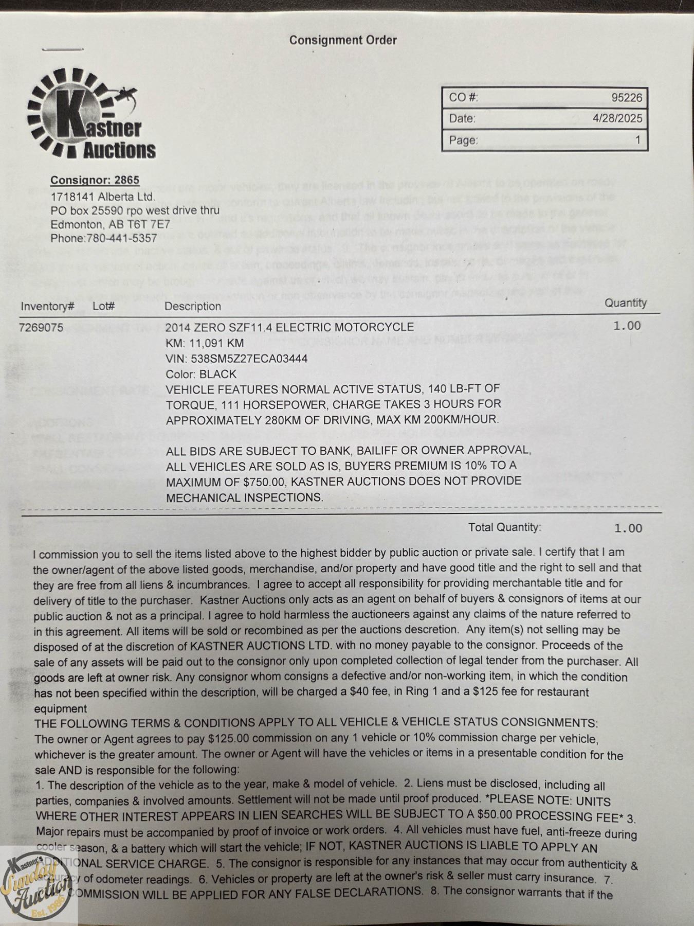 ALL BIDS ARE SUBJECT TO BANK, BAILIFF OR OWNER APPROVAL, ALL VEHICLES ARE SOLD AS IS, BUYERS PREMIUM IS 10% TO A MAXIMUM OF $750.00, KASTNER AUCTIONS DOES NOT PROVIDE MECHANICAL INSPECTIONS. **ALL ITEMS MUST BE REMOVED BY 5PM SATURDAY, MAY 10TH 2025. ALL REMAINING ITEMS WILL BE SUBJECT TO A $6.00 PER DAY STORAGE CHARGE. ANY ITEMS REMAINING AFTER MONDAY, MAY 26TH 2025 WILL BE CONSIDERED FORFEITED. NO REFUNDS WILL BE ISSUED FOR FORFEITED ITEMS. TO SCHEDULE A PICK UP APPOINTMENT CLICK HERE