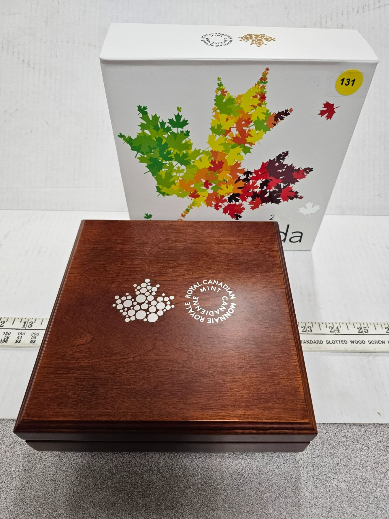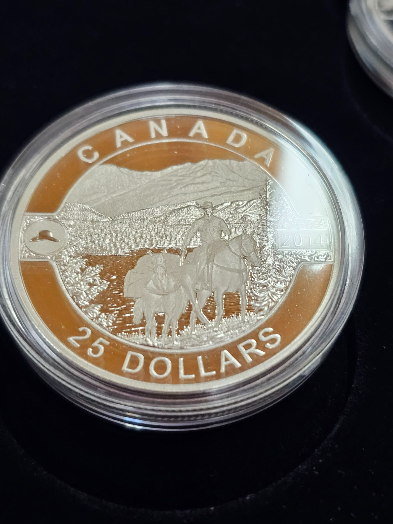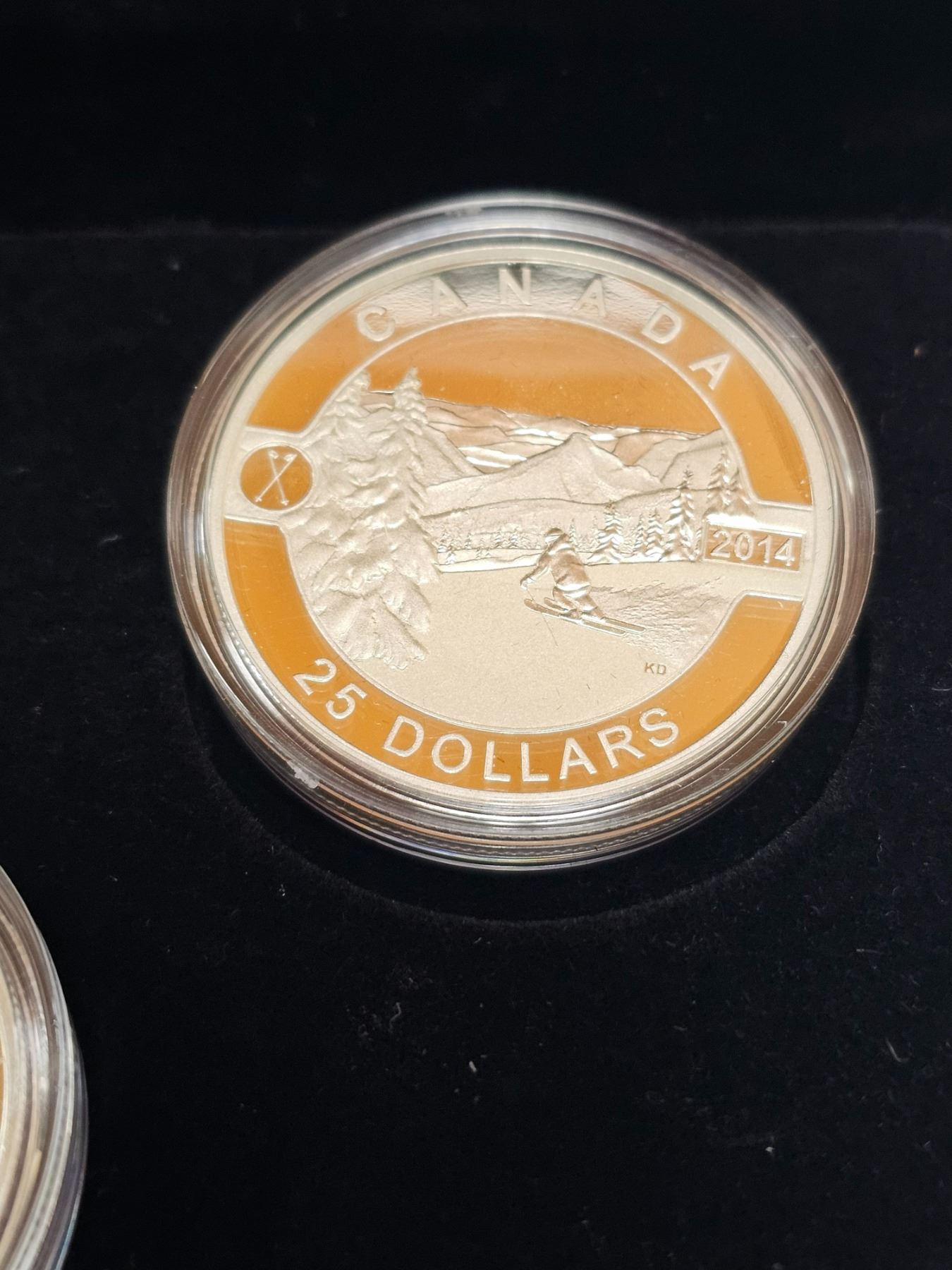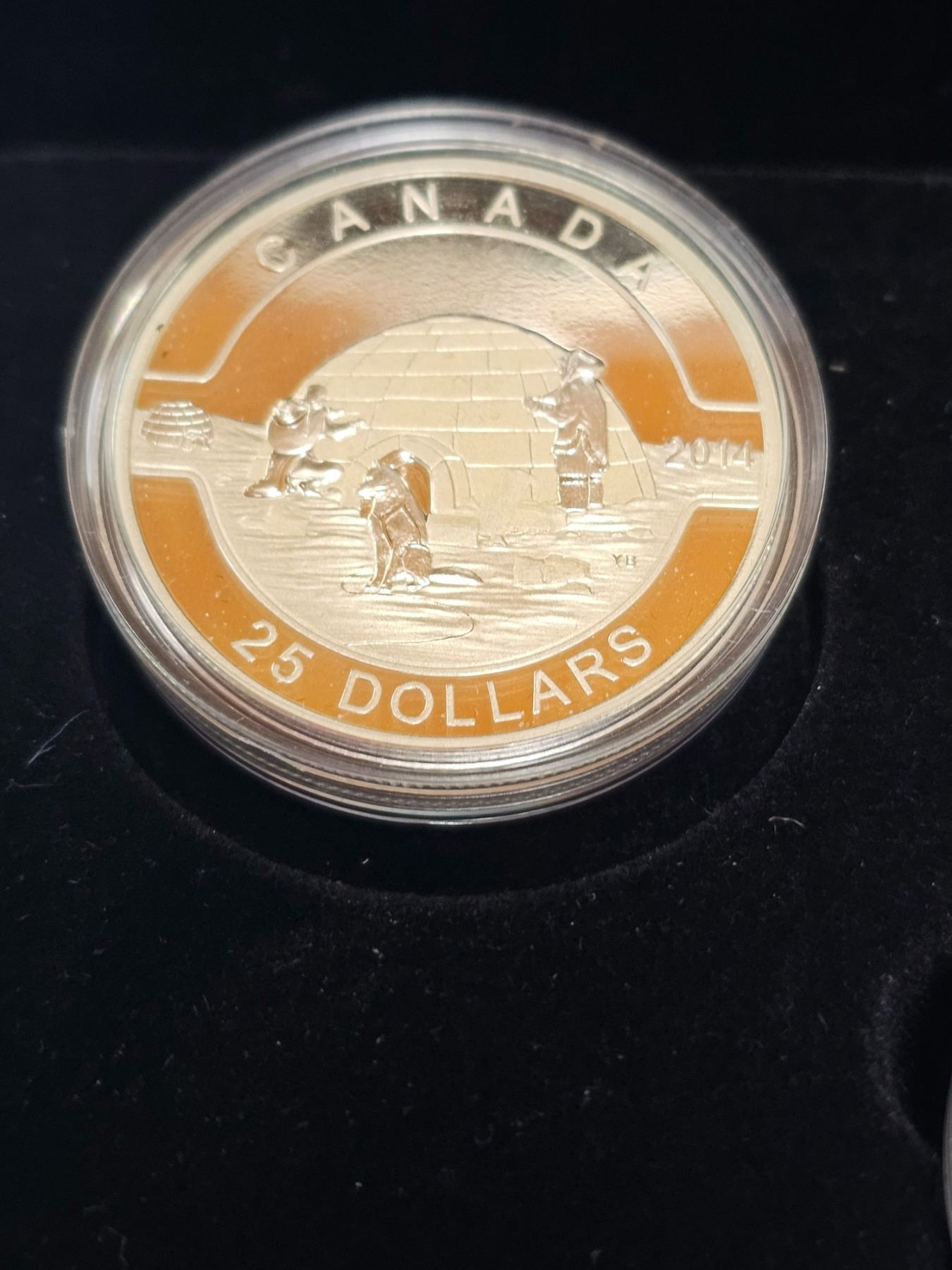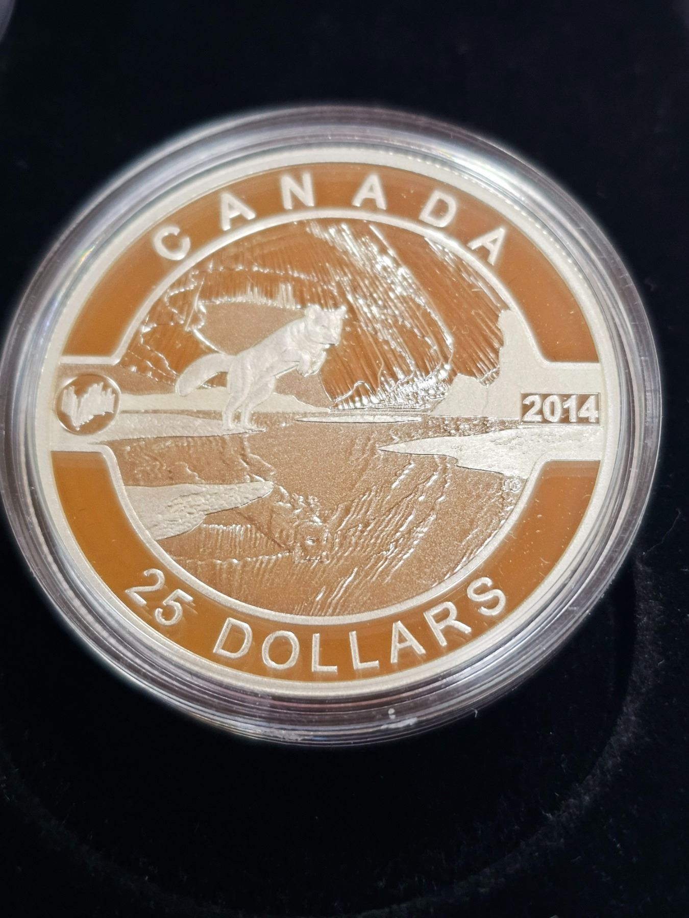 2014 complete set of 5 $25 o canada. Includes Lgloo, scenic skiing in canada, under the maple tree, cowboy rockies & the arctic fox and the nirthern lights. Each coin is 99.99% pure silver. Proof with ultra cameo. Housed in its original royal canadian mint case & box of issue, along with a certificate of authenticity