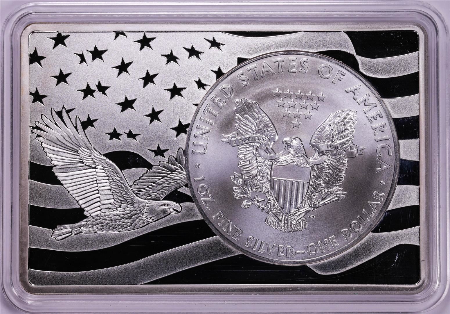 One 2015 $1 American Silver Eagle Coin & 2oz Silver Bar Set.