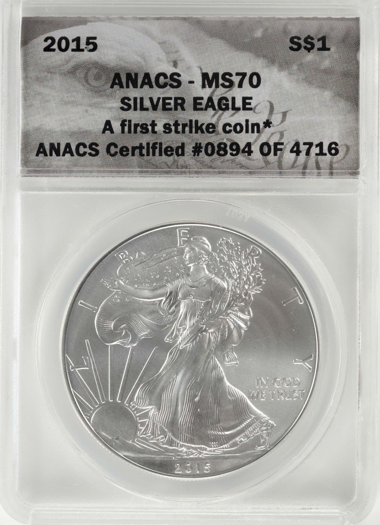 One 2015 $1 American Silver Eagle Coin ANACS MS70 First Strike.