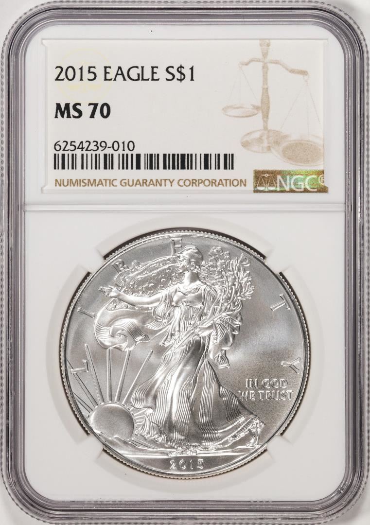 One 2015 $1 American Silver Eagle Coin NGC MS70. NGC Certified.