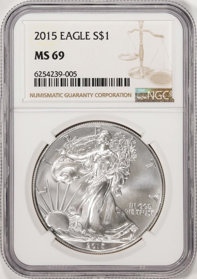 One 2015 $1 American Silver Eagle Coin NGC MS70. NGC Certified.