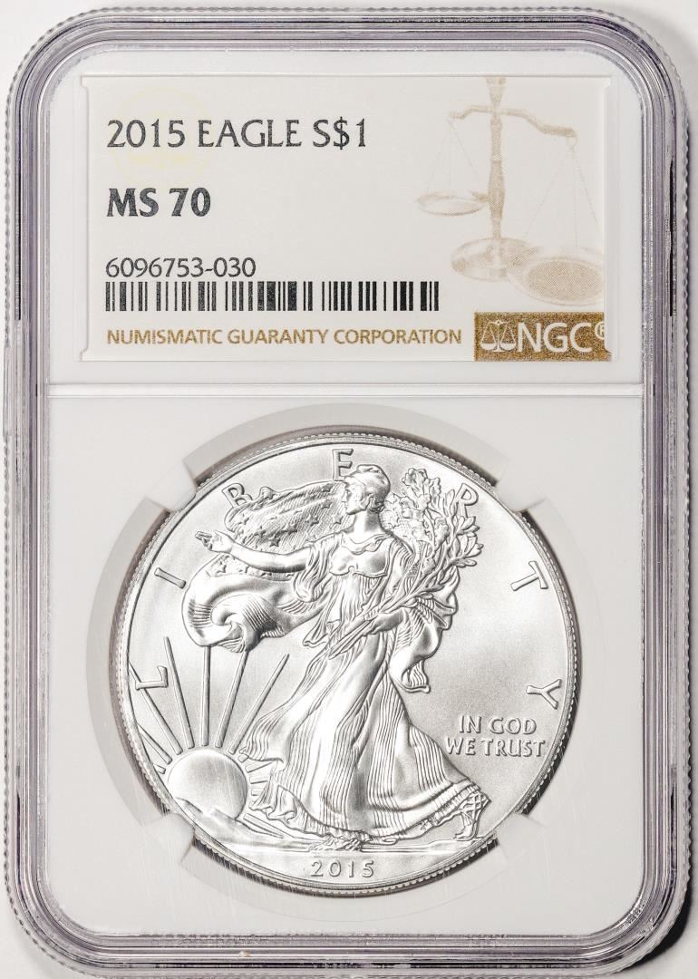One 2015 $1 American Silver Eagle Coin NGC MS70. NGC Certified.