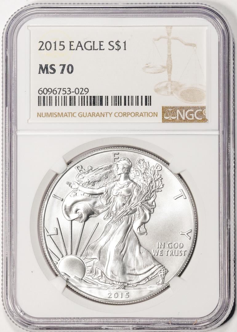 One 2015 $1 American Silver Eagle Coin NGC MS70. NGC Certified.