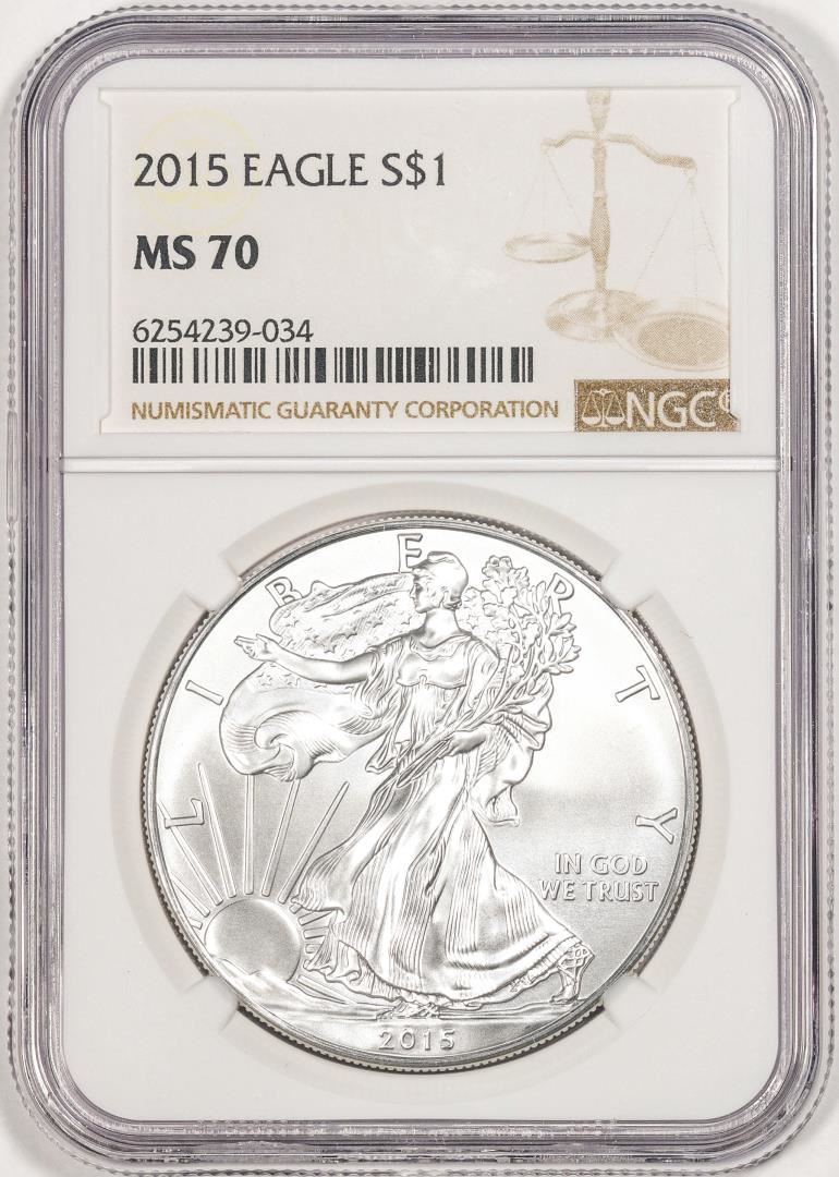 One 2015 $1 American Silver Eagle Coin NGC MS70. NGC Certified.
