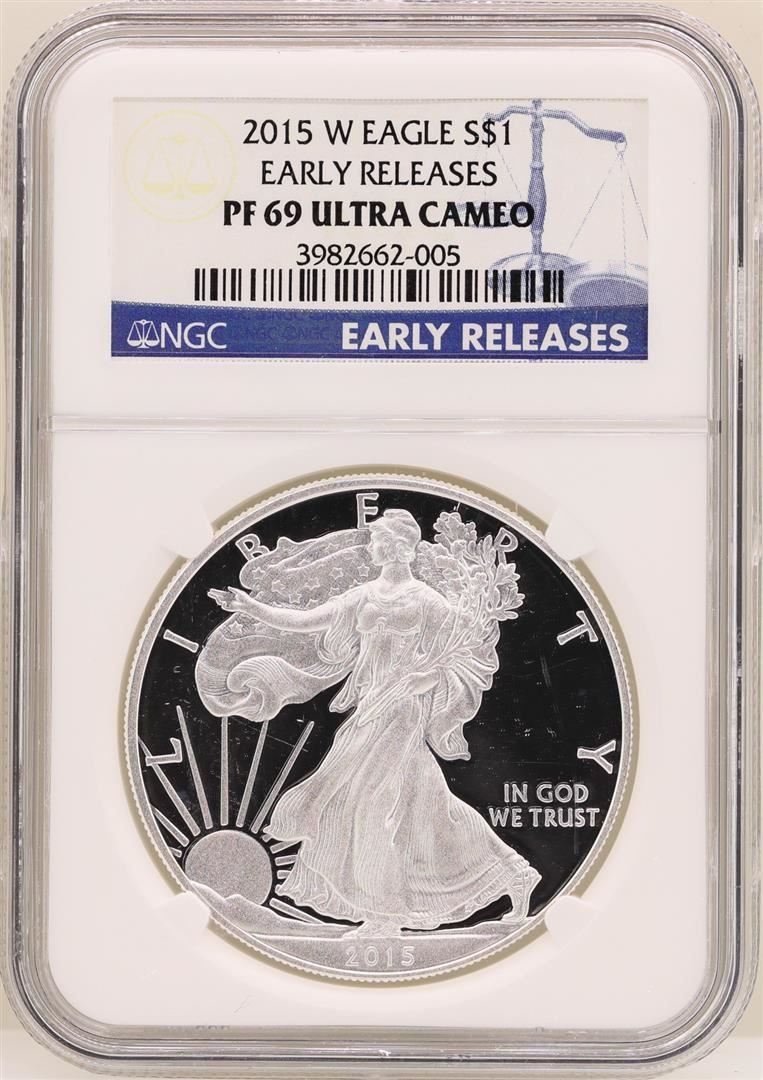 One 2015 $1 American Silver Eagle Coin NGC PF69 Ultra Cameo. NGC Certified.