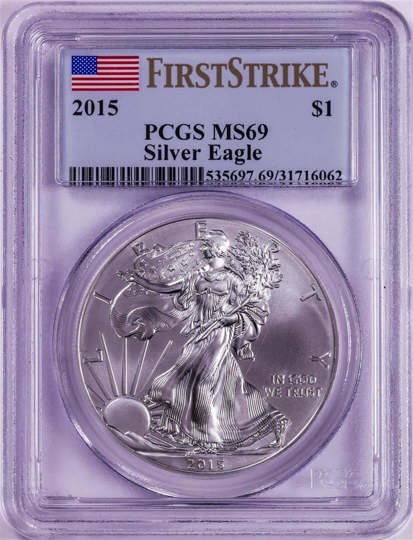 One 2015 $1 American Silver Eagle Coin PCGS MS69 First Strike. PCGS Graded.