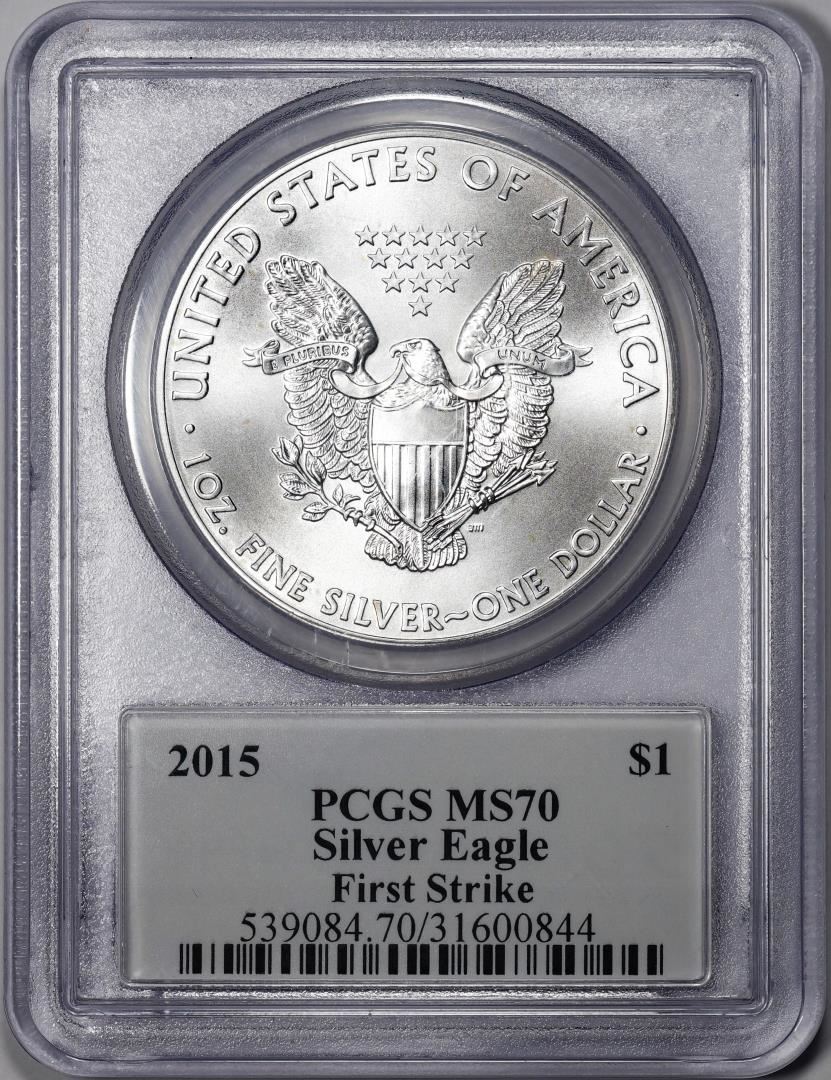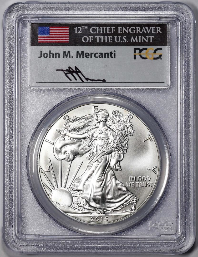 2015 $1 American Silver Eagle Coin PCGS MS70 First Strike Mercanti Signature