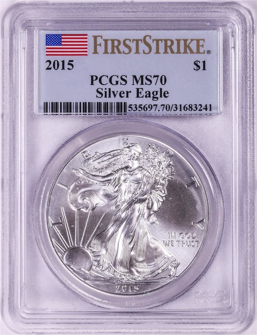One 2015 $1 American Silver Eagle Coin PCGS MS70 First Strike. PCGS Graded.