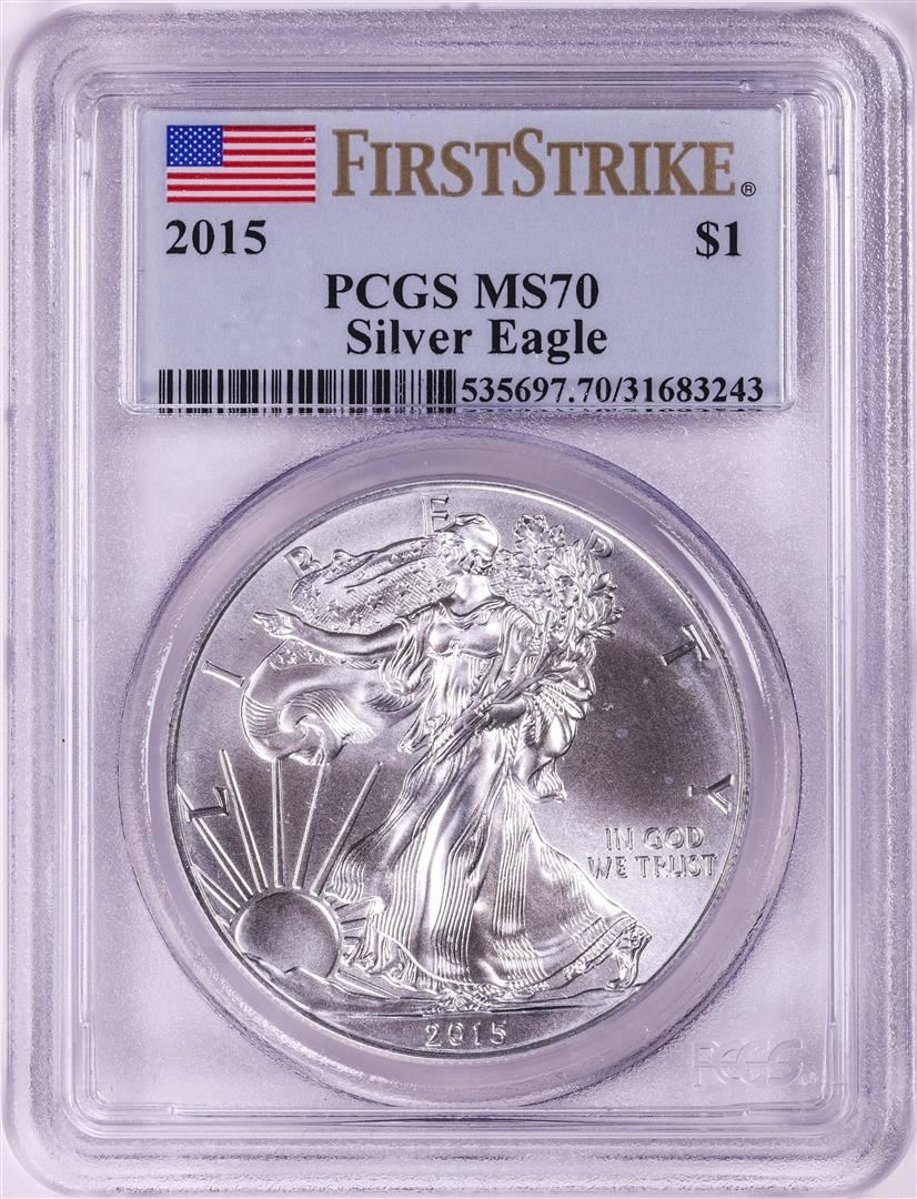 One 2015 $1 American Silver Eagle Coin PCGS MS70 First Strike. PCGS Graded.