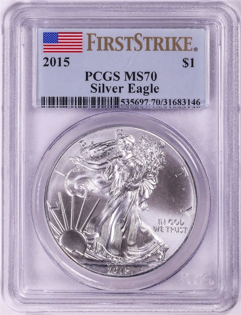 One 2015 $1 American Silver Eagle Coin PCGS MS70 First Strike. PCGS Graded.